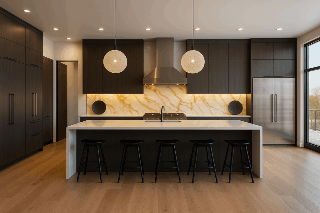 A backlit backsplash is a decorative wall panel (often made to look like marble or stone) that includes integrated LED lighting behind the surface, creating a soft, ambient glow. It’s both functional and visually striking.