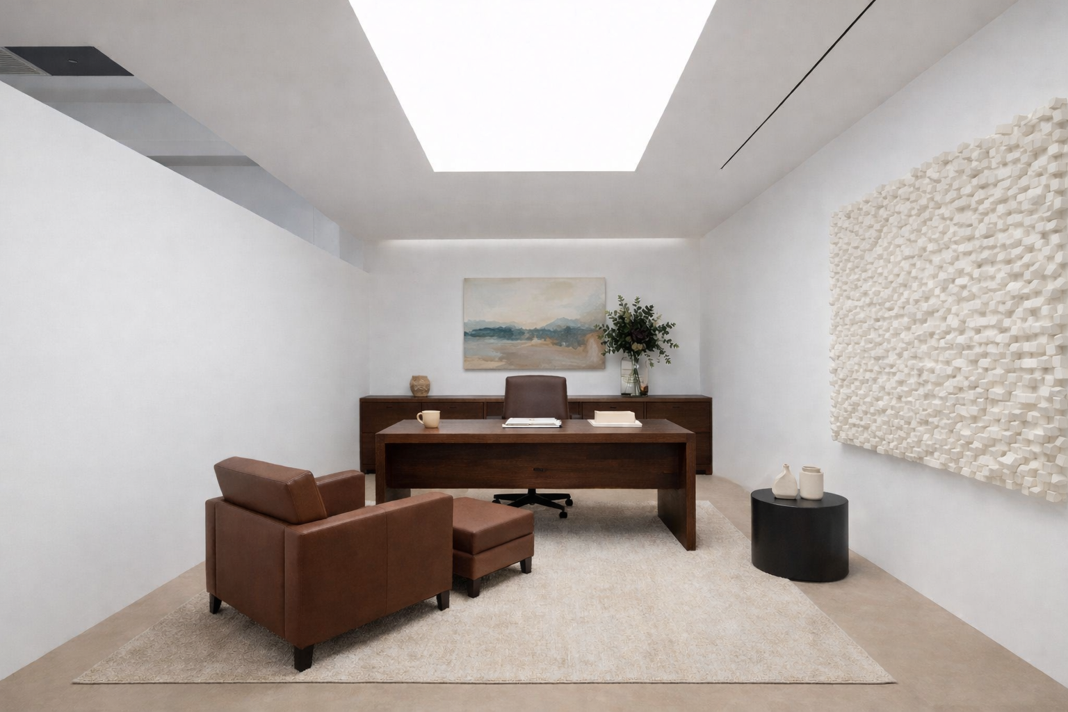 Send a photo of your office, ceiling height, and what you do (focus work, meetings, studio, creator setup). Space Ceiling will suggest a clean ceiling + lighting concept that fits the space and budget.