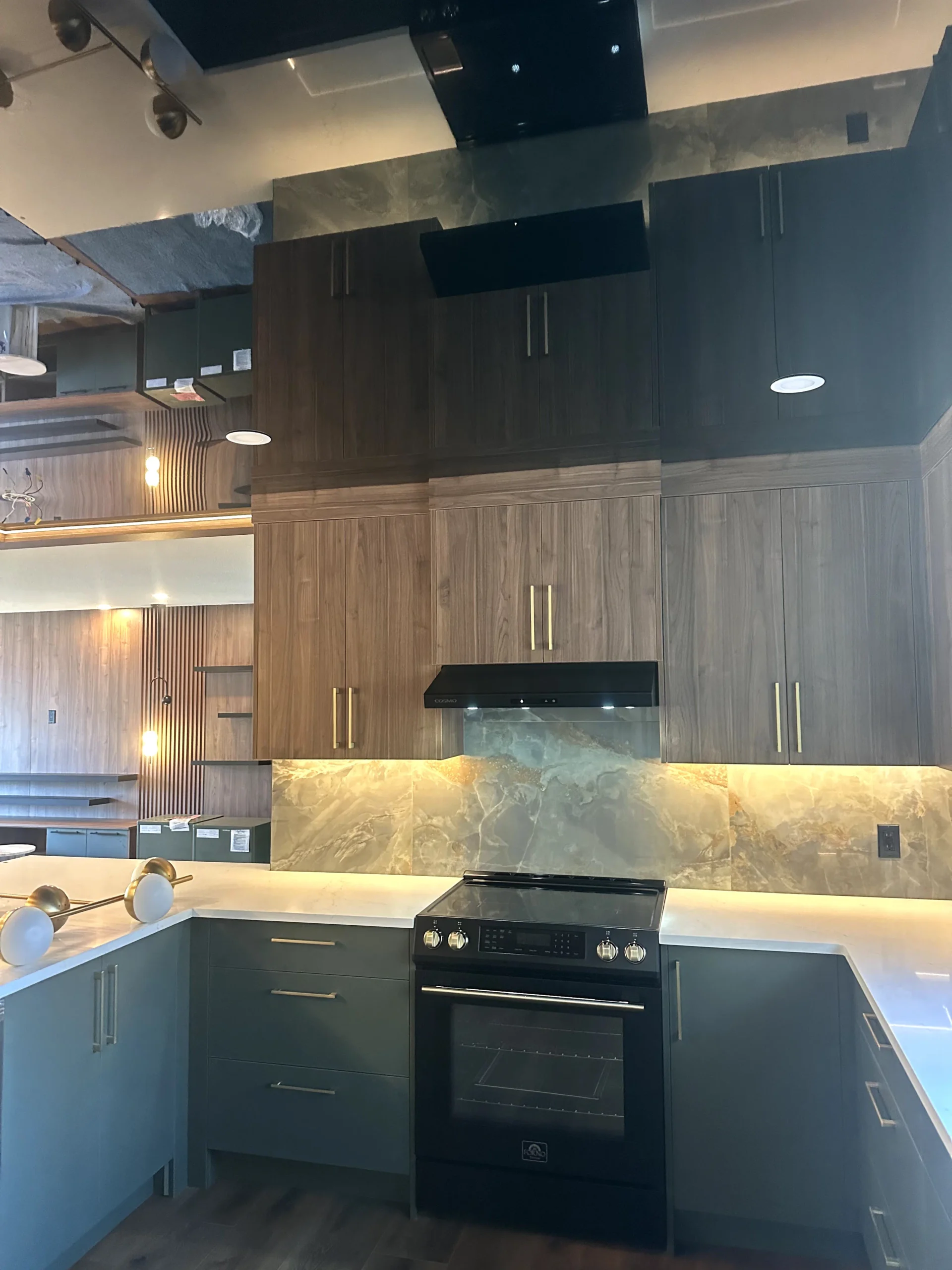 Yes. The LED ceiling channels and under-cabinet lighting are connected to the same system but can be controlled independently or synchronized, allowing homeowners to adjust lighting based on mood, time of day, or task requirements.